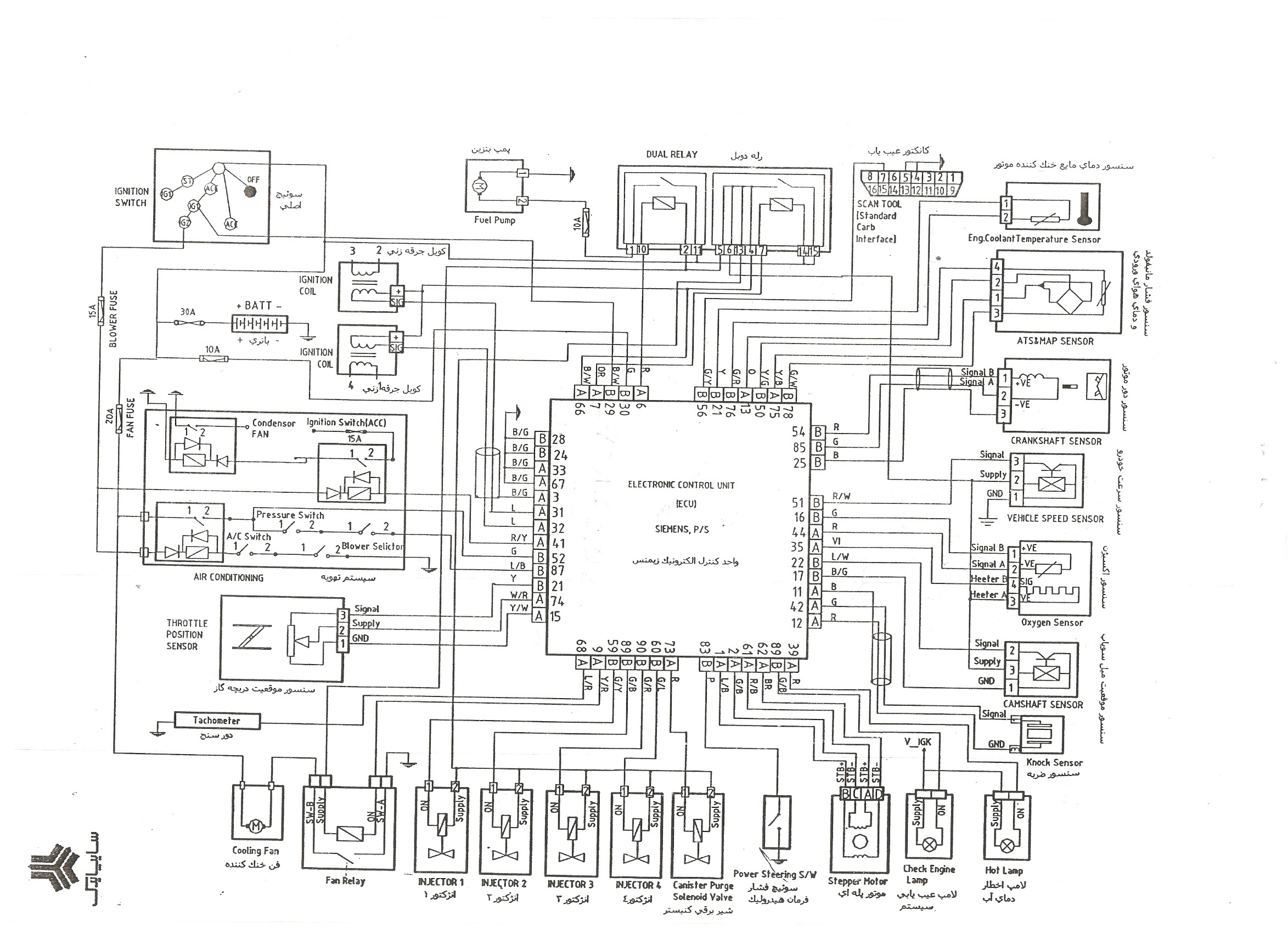 | سوخت رسانی پژوپارس و 405 با موتور XU7 و ایسیو زیمنس بنزینی یوروPeugeot-EOBD4 |